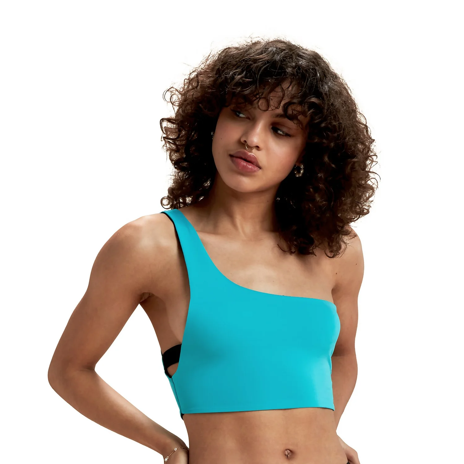 - Convertible top can be worn as a halter top or one shoulder top and reverses from black to teal.